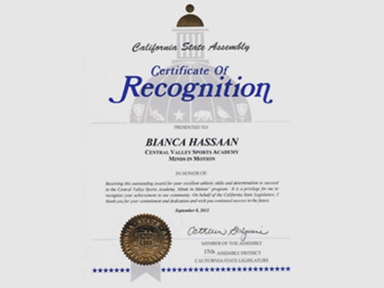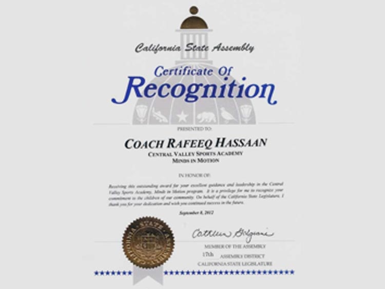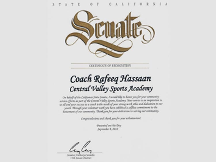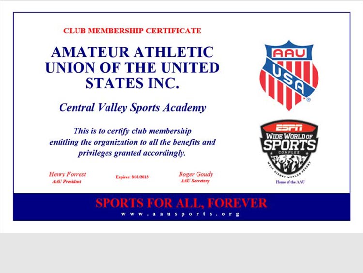 Certifications / Awards-Central Valley Sports Academy